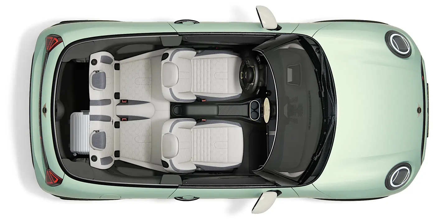 El legendario y compacto MINI Cooper presenta un interior sorprendentemente práctico y amplio, teniendo en cuenta su pequeño tamaño exterior. Su habitáculo crea un espacio cómodo y versátil para pasajeros y equipajes.